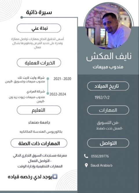 ابحث عن عمل في أي مجال اشتغلت سابقا في بقالة لمدة سنتين ترتيب رفوف توصيل بدباب صغير يمني الجنسية العمر 24 نشيط ومهتم في عملي