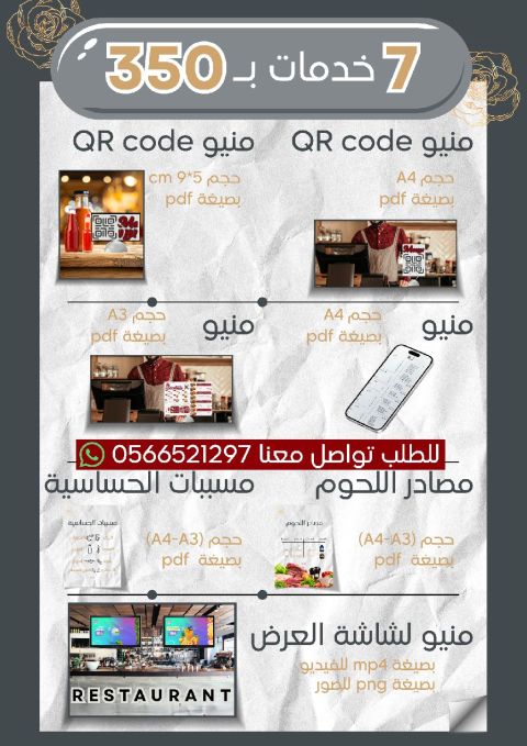 تصميم منيو QR code احترافي وكل ما يخص التصميم الجرافيك للمطاعم والشركات