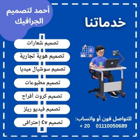 لو هتقدم على شغل ومحتاج CV احترافي يبين مهاراتك وخبرتك ولو محتاج اعلانات سوشيال ميديا ليك أو لشركتك ولو محتاج لوجو أو شعار احترافي لمحلك أو لشركتك ولو طبيب أو محامي ومحتاج بزنس كارد أو كارت شخصي لو عريس ومحتاج كارت دعوة لكل حبايبك وأصحابك لو خريج ومحتاج كارت دعوة لحفلة التخرج ولو مدرس ومحتاج اعلان سوشيال ميديا لشغلك. كل ده تقدر تعمله وأنت مكانك بد وسه وحدة فقط لا تنتظر ابعتلنا رسالة