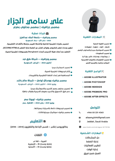 مصمم جرافيك محترف تصميم شعار سيرة ذاتية احترافية باللغة اللي تبيها ملف أعمال يظهر أعمالك بشكل احترافي تعديل صور هوية بصرية اعلان لشركتك. فيديو أو صورة كل اللي تبغاه موجود