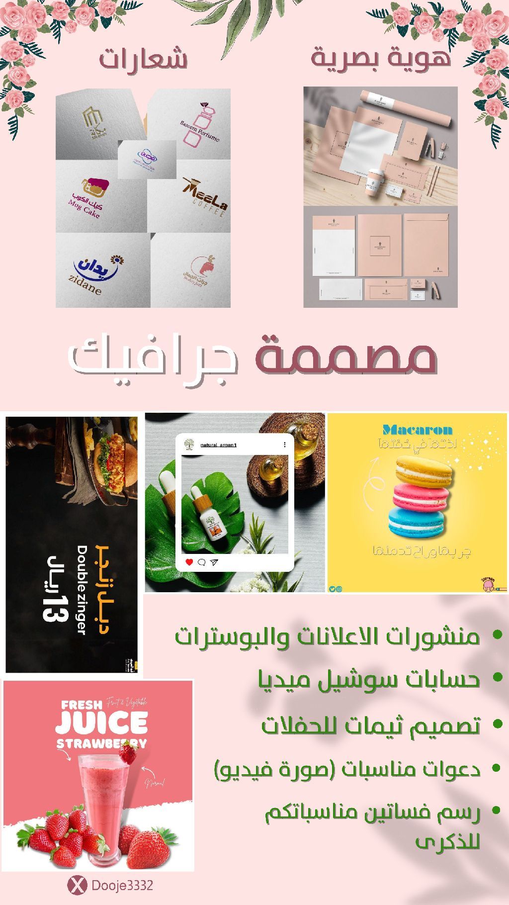 مصممة جرافيك تصميم لوغو أو هوية بصرية كاملة تصميم للسوشيال ميديا انستغرام سناب تيك توك - تصميم للمتاجر الالكترونية بنرات، صور العرض. تصميم منيو للمطاعم والوجبات أو المشروبات تصميم ثيمات للمناسبات، دعوات الالكترونية، مواليد، تخرج، زواج، خطوبة، ملكة - تصميم دفاتر مدرسية، ملف انجاز، بطاقة، شهادات شكر وتفوق وما الى ذلك - رسامة أزياء ورسم بر وتريه. التواصل واتسسساب