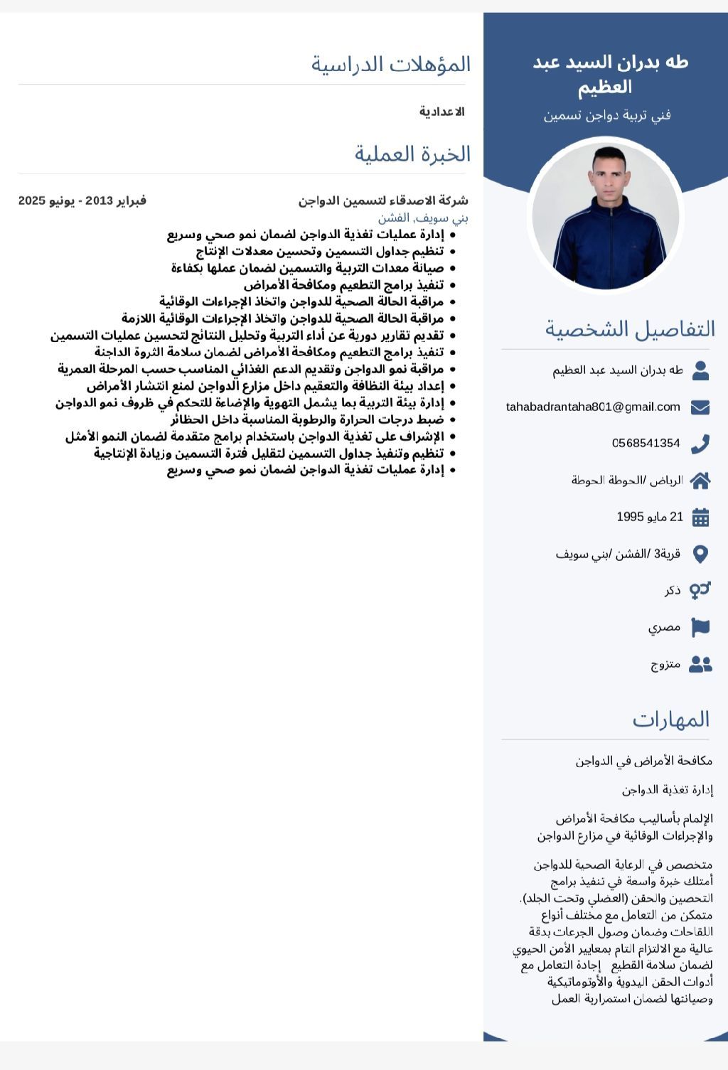 فني تسمين دواجن خبرة 13 سنة في مزارع الدواجن في مصر