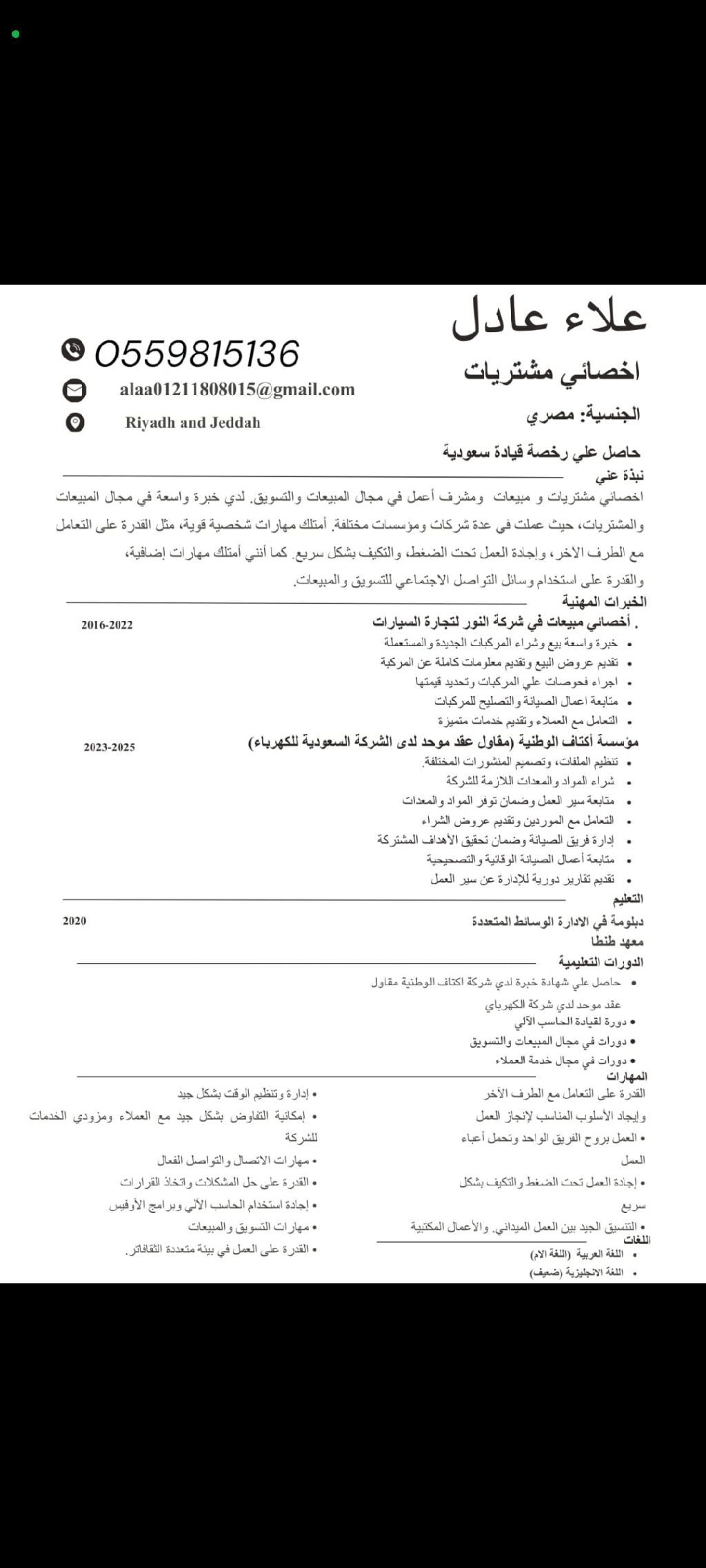 مصري الجنسية ابحث عن عمل مقيم في جدة لدي رخصة قيادة سارية وإقامة سارية قابلة للنقل