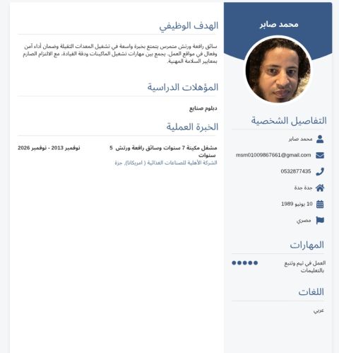 سوداني العمر 32 عاما متعلم وذو أخلاق عالية وأجيد القليل من الانجليزية إقامة سارية باقي فيها سنة قابلة للنقل ورخصة قيادة سعودية اشتغلت كاشير لمحل حلويات وأمين للمستودع ومسؤول من المحل وحساباتها مدة سنة وسبعة أشهر وعملت في مجال التوصيل في أكثر من تطبيق وأكثر من عمل داخل المملكة