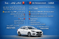 Job Announcement - Jeddah A leading delivery company is hiring Parcel Delivery Drivers in Jeddah Basic Salary 2400 SAR + Attractive Incentives Company provides vehicle and fuel Mobile phone & internet are the driver’s responsibility Requirements Valid Iqama Valid Driving License Individual Iqamas are not accepted To apply, please contact us