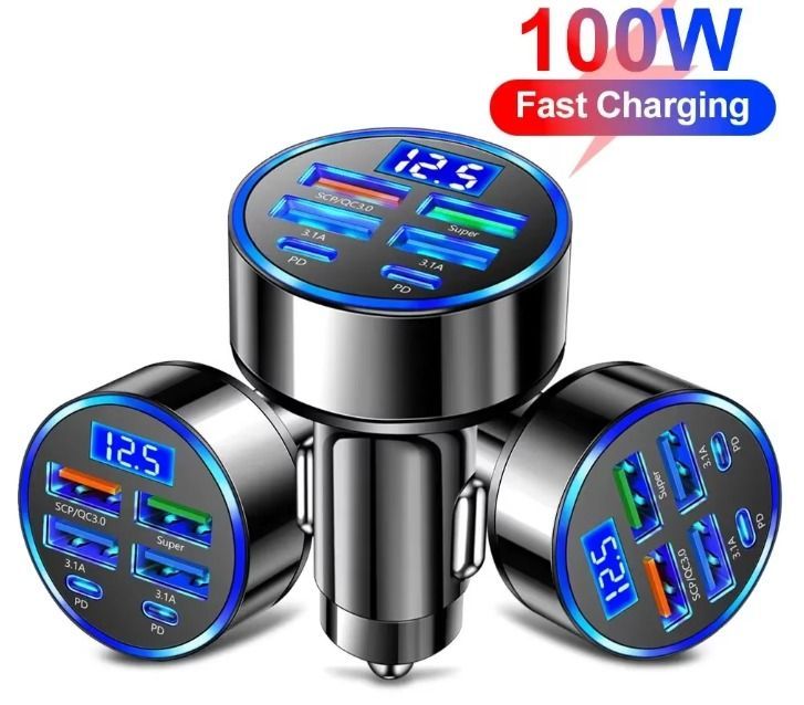 الموقع جدة السعر فقط 50 ريال اشحن كل أجهزتك بنفس الوقت وبسرعة خرافية QC3.0 + PD + 3.1A - يدعم الشحن السريع لجميع أنواع الجوالات شاشة رقمية ذكية تعرض فولت البطارية تصميم أنيق من الألومينيوم ومقاوم للحرارة متوافق مع جميع السيارات (12V / 24V) 6 مخارج (4 USB + 2 Type - C شحن فائق السرعة لهواتف سامسونج / آيفون / هواوي / شاومي جودة ممتازة وسعر منافس. جدة