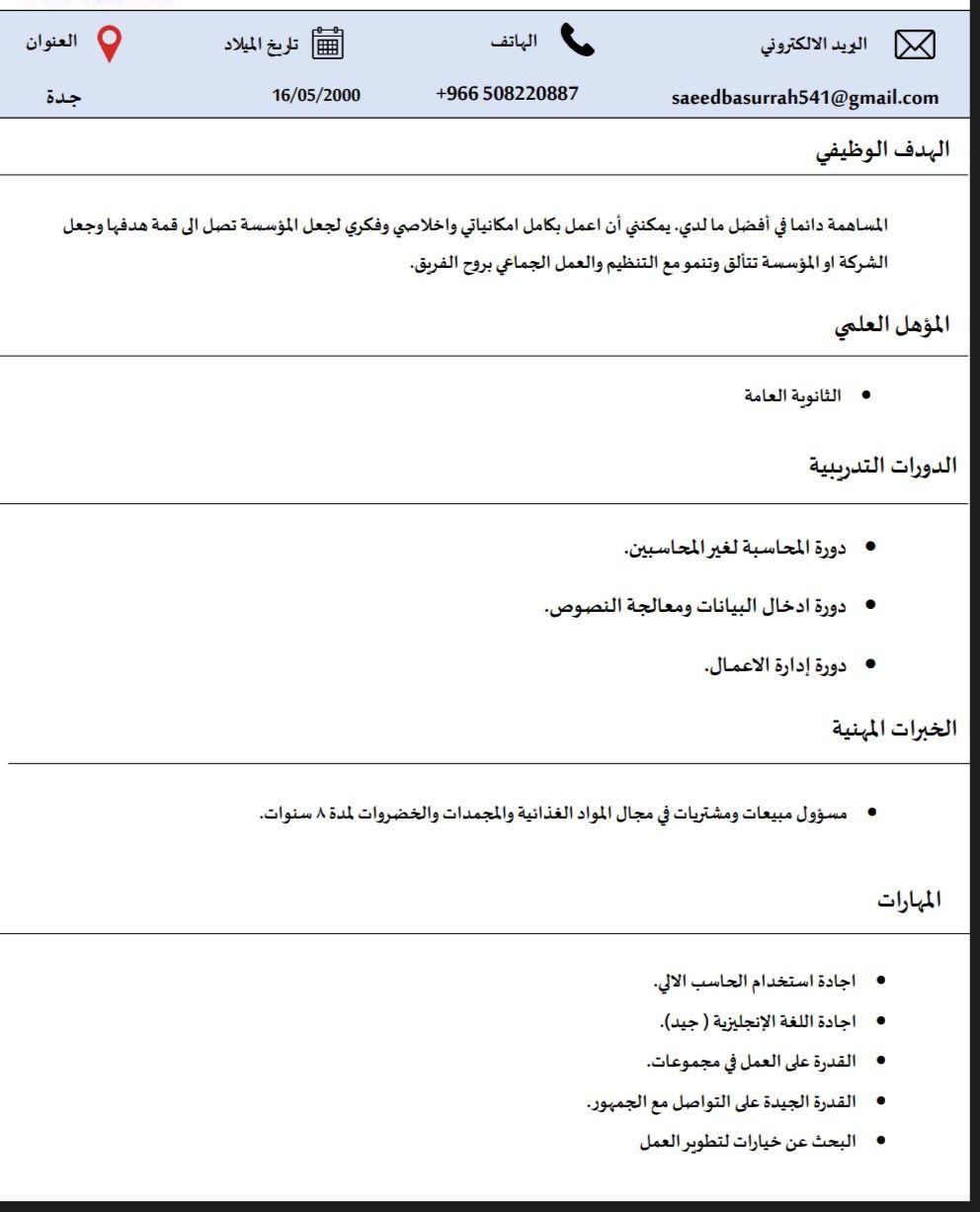 مهتم وملتزم تحت أي ظرف. أقوم بجميع الأعمال الادارية من شراء وبيع