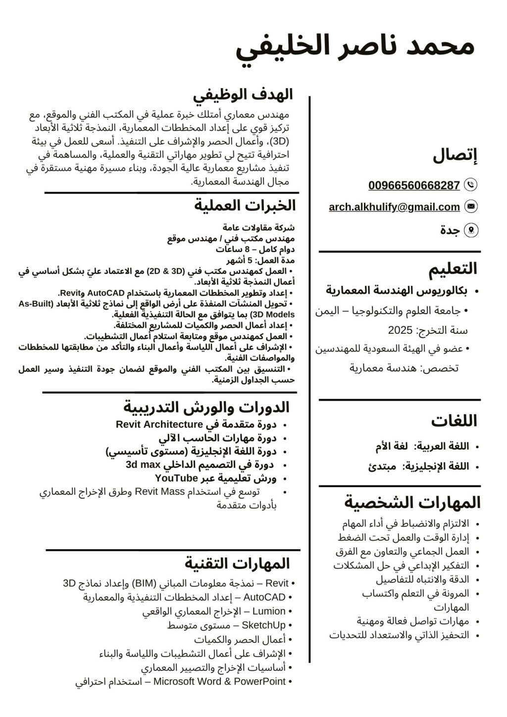 مهندس معماري ابحث عن وظيفة في مدينة جدة مهندس موقع واستلام جميع الأعمال المعمارية والانشائية ومحترف في جميع البرامج المعمارية