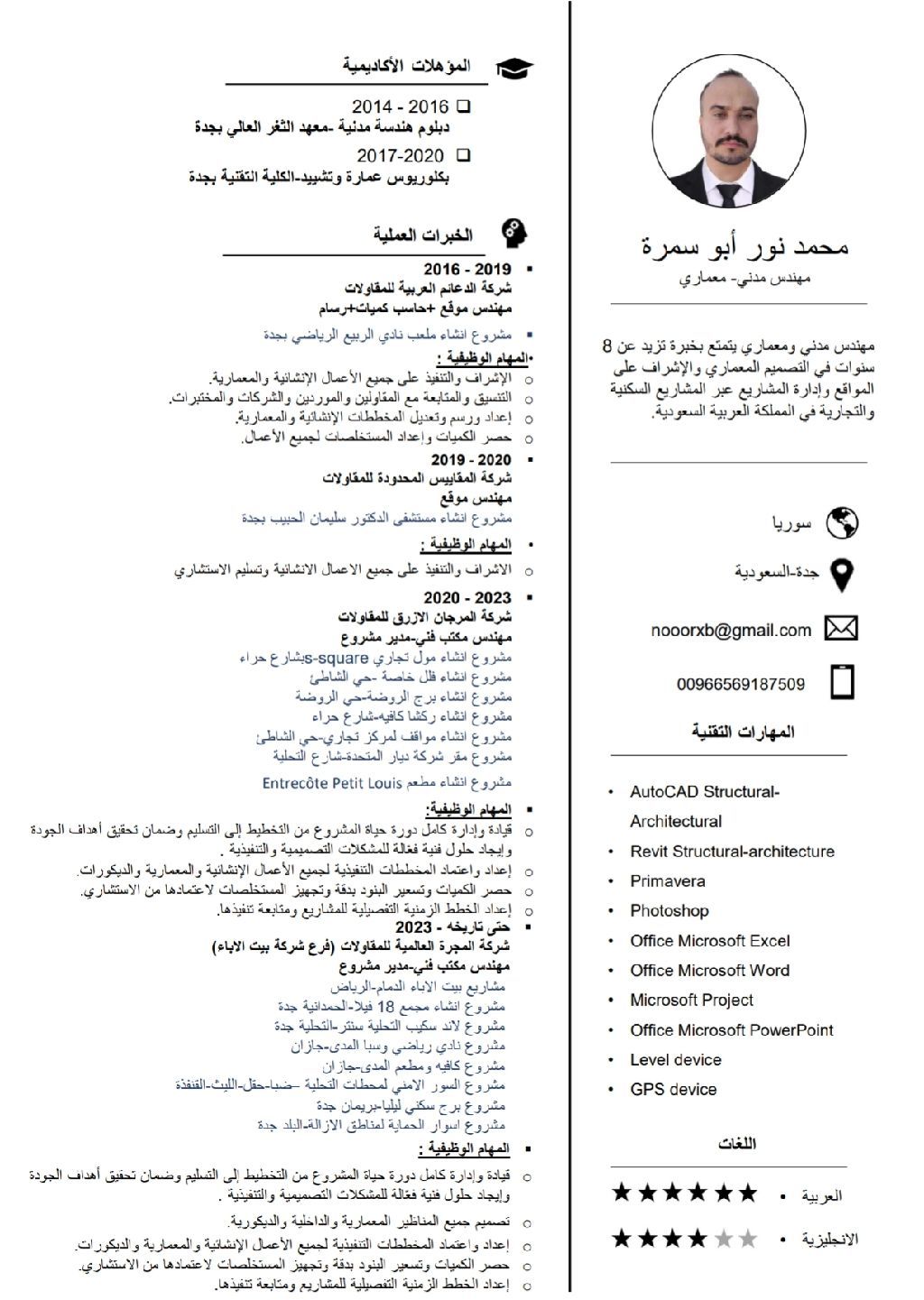 مهندس معماري - مدني خبرة عالية في مشاريع نوعية ومتنوعة أرغب بالعمل في شركة كبيرة أو مؤسسة ناشئة لتطويرها وادارتها هندسيا في مدينة جدة