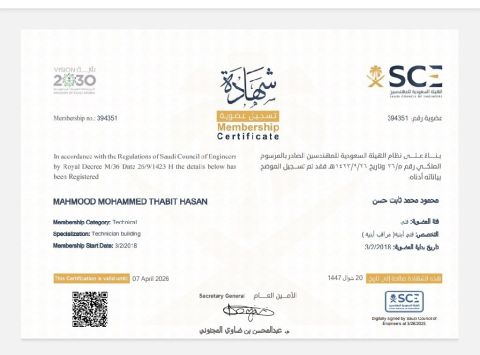 مراقب إنشاءات لدي عضوية في الهيئة السعودية للمهندسين، خبرة 14 سنة في السعودية اشراف وتنفيذ اشتغلت بشركات مقاولات ومكاتب هندسية في مشاريع متعددة، ولدي اعتماد من الشركة الوطنية للاسكان، لدي اقامة سارية وقابلة للنقل ورخصة قيادة سعودية ومستعد للعمل في أي مكان داخل المملكة