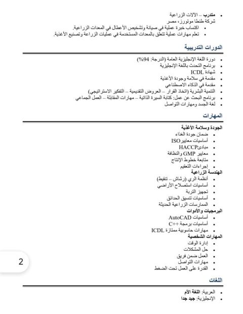 مهندس أغذية خبرة 10 سنوات في مجال الاشراف ومتابعة العملية الانتاجية وتحفيز العمالة لرفع الطاقة الانتاجية بأقل فاقد وبأعلى جودة. متابعة المشاكل الانتاجية والتنسيق بين الأقسام الأخرى (الجودة - الصيانة) اعداد التقارير والمراجعة الداخلية لتقارير حسب متطلبات الأيزو ومعرفة في الهاسب HACCP وكذلك GMP