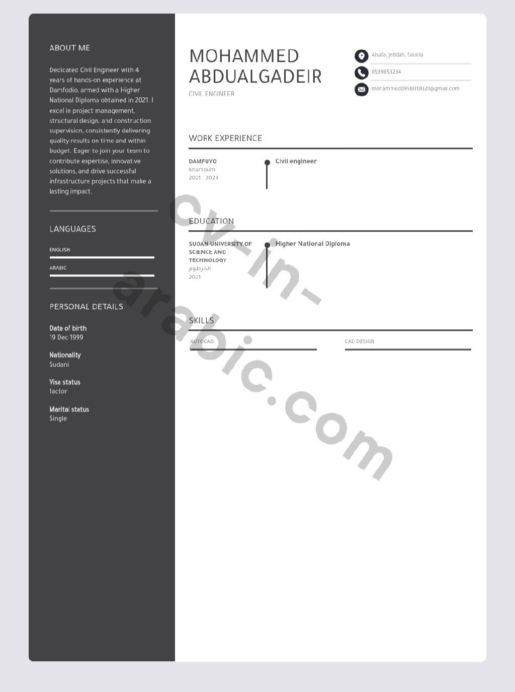مهندس مدني انشاءات خريج جامعة السودان لدي خبرة 3 عام