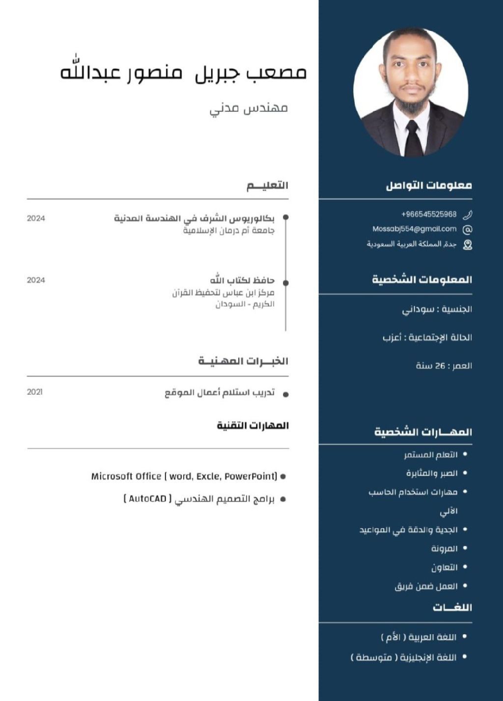 Sudanese civil engineer. Accredited by the Saudi Council of Engineers