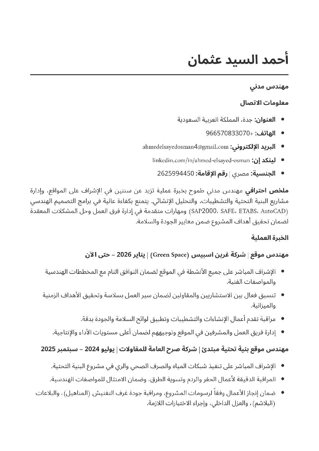 أنا مهندس مدني مقيم في جدة خبرة في التشطيبات والبنية التحتية خبرة 4 سنين