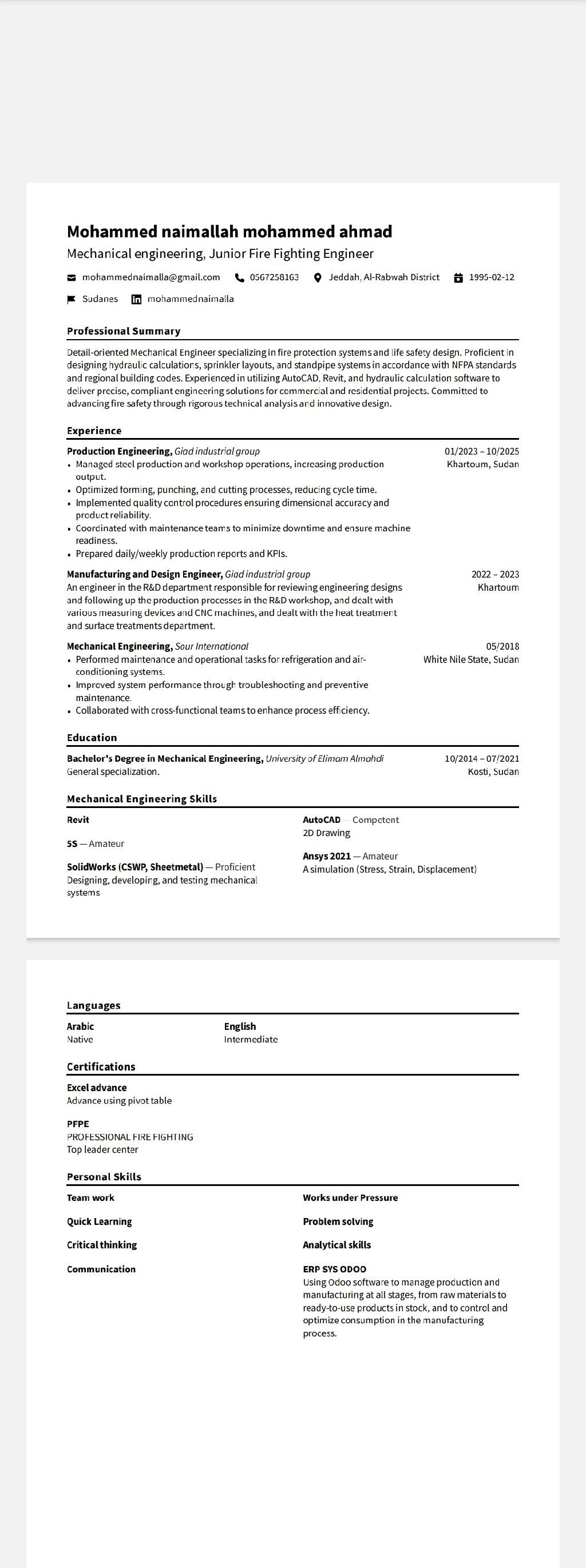 A junior fire fighting Engineer looking for a job opportunity