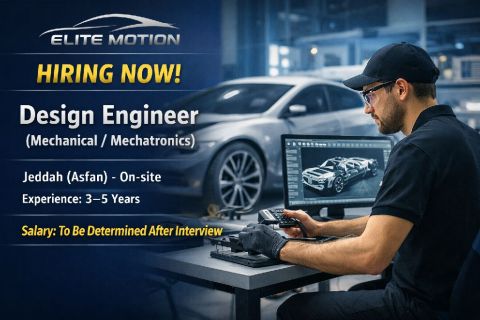 Elite Motion, an automotive startup in Jeddah is hiring a Design Engineer (Mechanical/ Mechatronics) with 3 - 5 years experience. Role includes CAD design, composite body parts, tooling, DFM, and prototype support. Strong SolidWorks skills (CSWP + surfacing, sheet metal, weldments, and ANSYS CFD experience are required. On - site role with startup mindsetThe salary will be determined after the interview