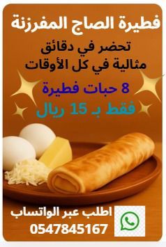 فطيرة الصاج المفرزنة تذوق ألذ فطيرة بطعم لا يقاوم تحضر في دقائق فقط اضف لها البيض أو الجبن لتحصل على طعم ولا أروع. مثالية لكل الأوقات للفطور، العشاء، أو كسناك سريع. حضرها في بيتك بسهولة والطعم خيالي أطلبها الآن أو احفظها في الفريزر لحين الحاجة. أطلب عبر الواتساب خدمة التوصيل متوفرة