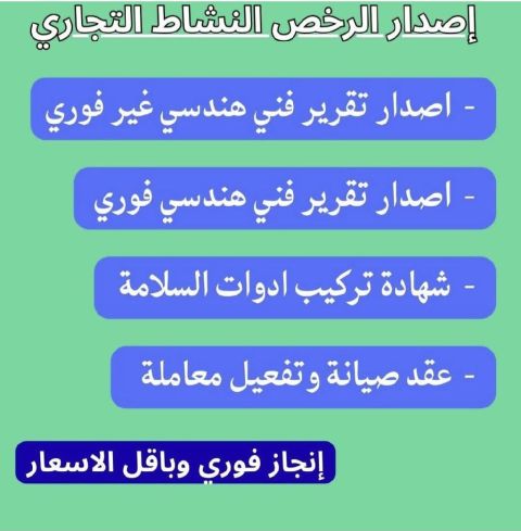 اصدار أو تجديد شهادة سلامة وتقرير فني هندسي واصدار عقد نظافة