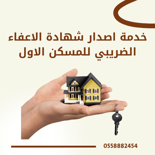 خدمة اصدار شهادة الإعفاء الضريبي للمسكن الأول وصف الخدمة نقدم لك خدمة لاصدار شهادة الإعفاء الضريبي للمسكن الأول بسرعة وسهولة، التأكد من استيفاء كل متطلبات الإعفاء، مما يوفر عليك وقتك وجهدك. تساعدك على الاستفادة من الإعفاء الضريبي بشكل قانوني ومسهل. نوفر لك ارشادات واضحة عن الأوراق المطلوبة وكيف تقدم الطلب. نتعامل مع جميع الخطوات نيابة عنك حتى حصولك على الشهادة. سعر الخدمة 99 ريال