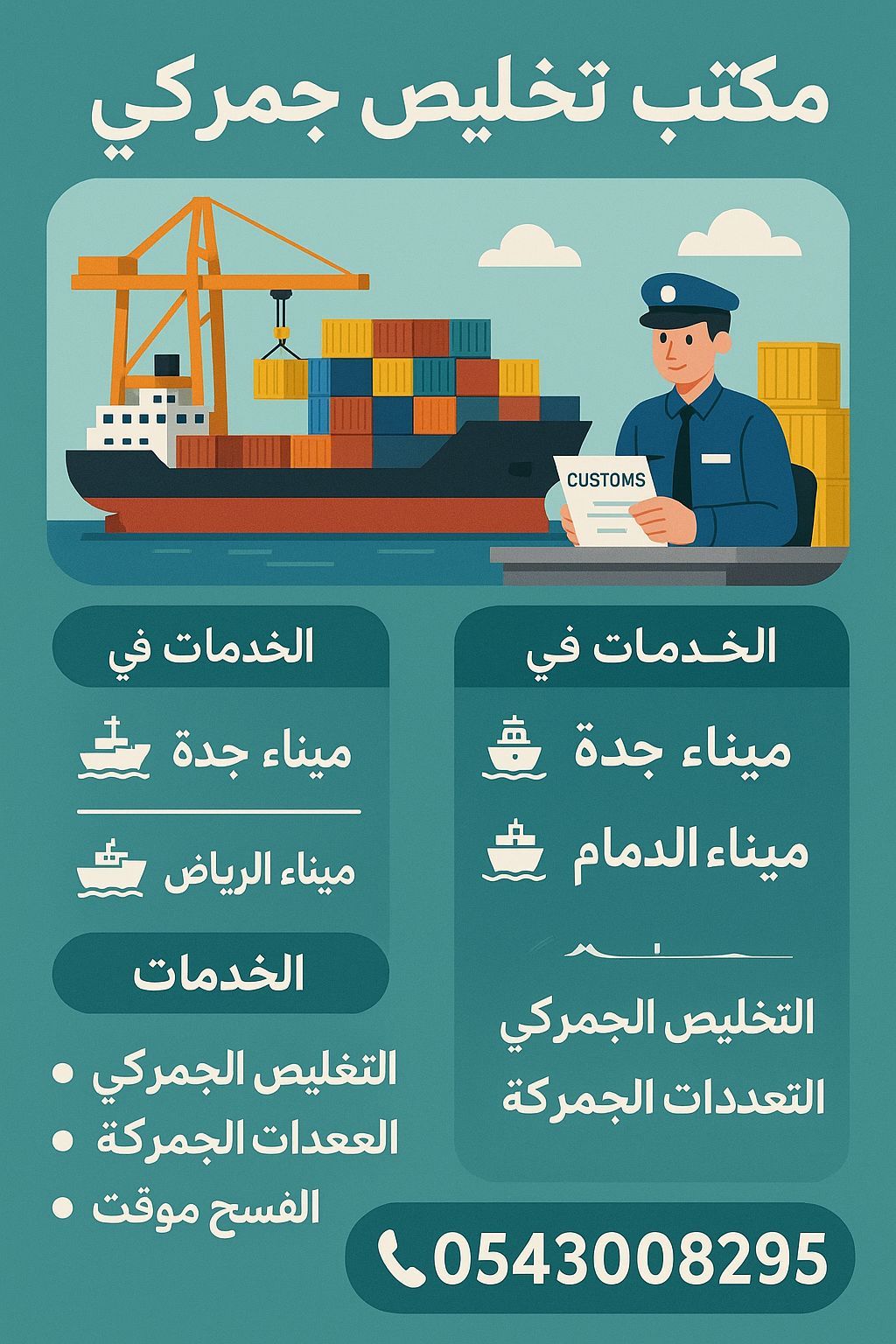 مكتب التخليص الجمركي والنقل نقدم لك جميع خدمات التخليص الجمركي عبر أهم المنافذ في المملكة ميناء جدة الاسلامي، ميناء الرياض الجاف، ميناء الدمام البحري، ميناء رابع، جمرك سلوى، جمرك البطحاء، جمرك ضباء، وجميع المطارات، مع توفير خدمة النقل السريع والآمن من الميناء أو المطار حتى مستودعاتك. خدماتنا تشمل تخليص جمركي لجميع أنواع الحاويات والشحنات. نقل البضائع من والى الموانئ والمطارات