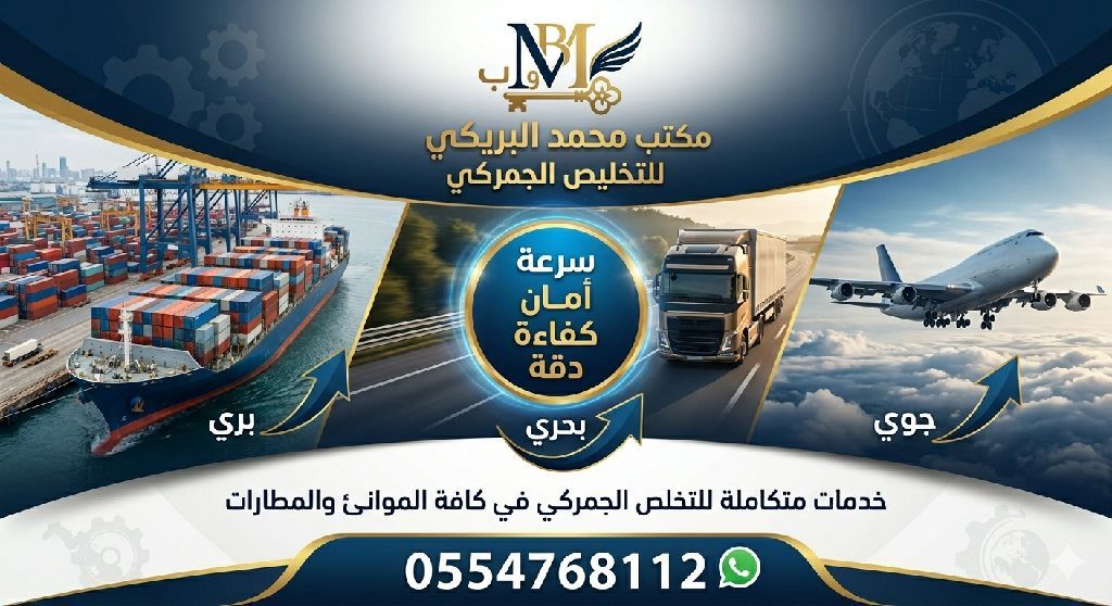 مكتب محمد البريكي للتخليص الجمركي والخدمات اللوجستية هل تبحث عن السرعة والدقة في انهاء إجراءاتك الجمركية نحن هنا لخدمتكم وتسهيل أعمالكم في كافة المنافذ تخليص بري تخليص بحري (الموانئ) تخليص جوي خبرة واسعة في القوانين والاجراءات الجمركية. سرعة في الانجاز لتجنب غرامات التأخير. أسعار تنافسية تناسب جميع التجار والمستوردين. نخدمكم أينما كنتم وفي جميع المنافذ. للتواصل