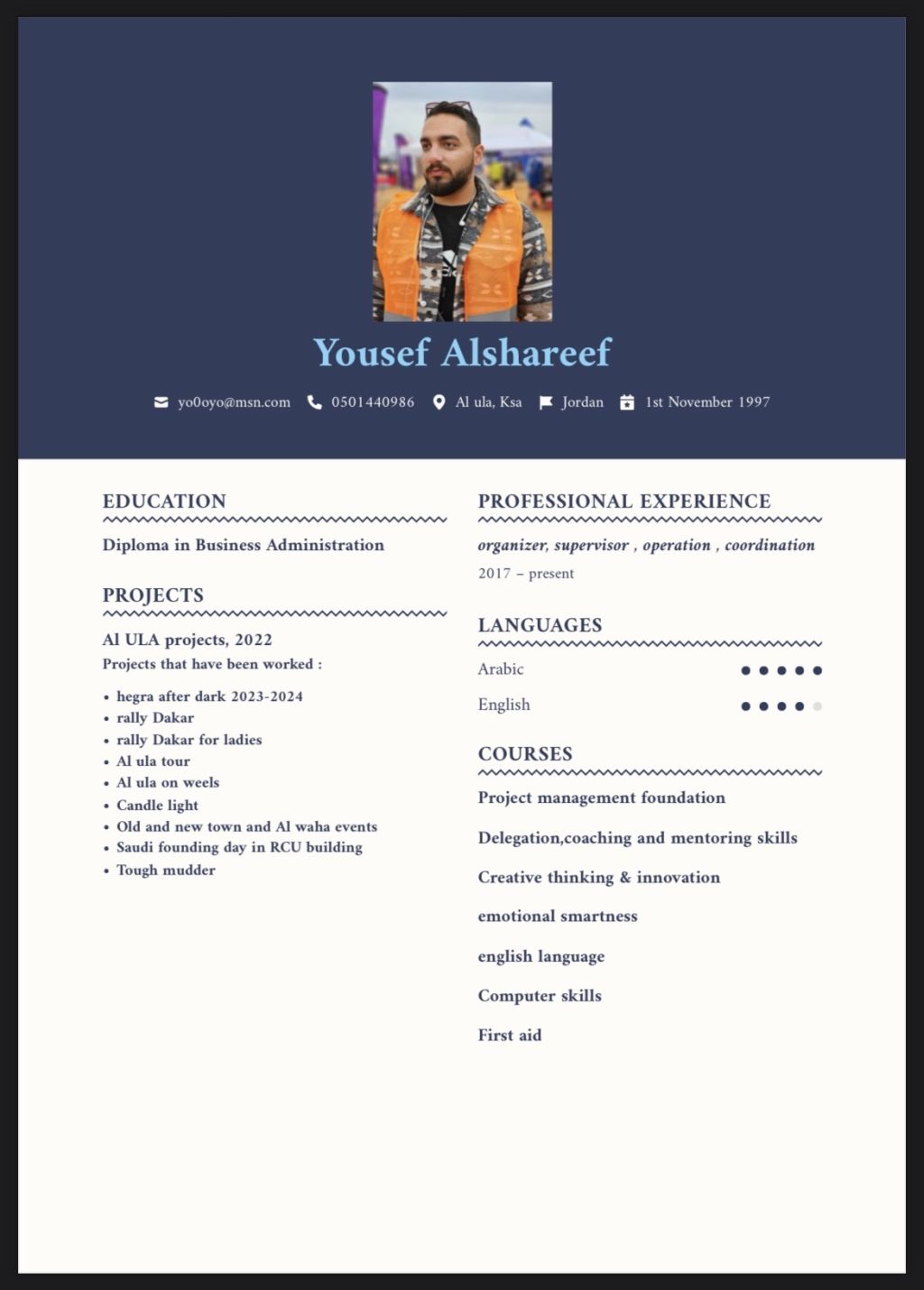مرافق شخصي متواجد في جدة أردني العمر 28 متوفر للعمل بدوام كامل أو جزئي والمعلومات مرفقة بال CV