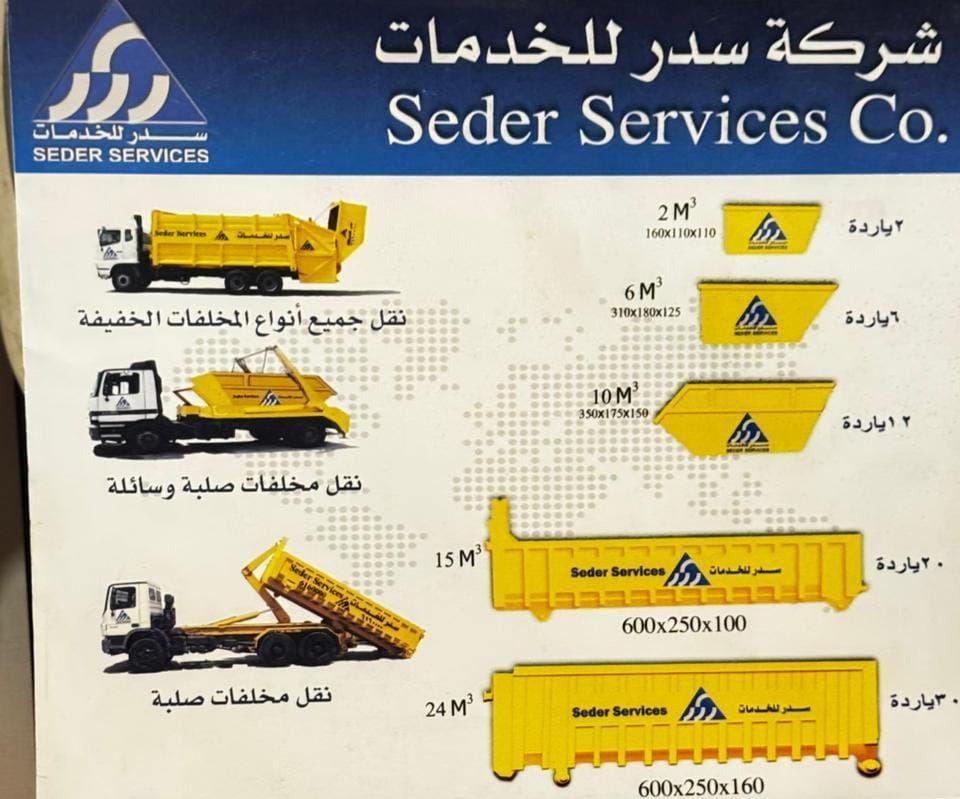 اعلان تعاقد - شركة سدر الخدمات حلول متكاملة لإدارة النفايات والهدد والانقاض حاويات (20 & 30 يا ردة) للانقاض وحاويات تبدأ من (240 لتر & 2 يا ردة & 4 يا ردة & 6 يا ردة) لعقود النظافة والنفايات. في جدة ومكة وينبع