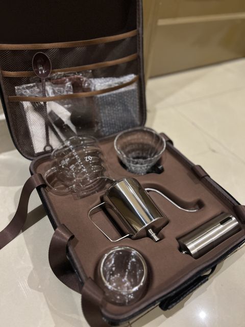 شنطة أدوات القهوة v60 كاملة 12 قطعة أساسية وسهله الحمل للمكتب والسفر والبر ب 100 ريال جديدة