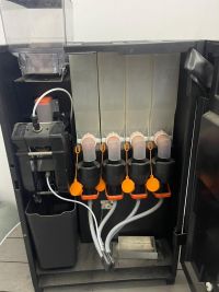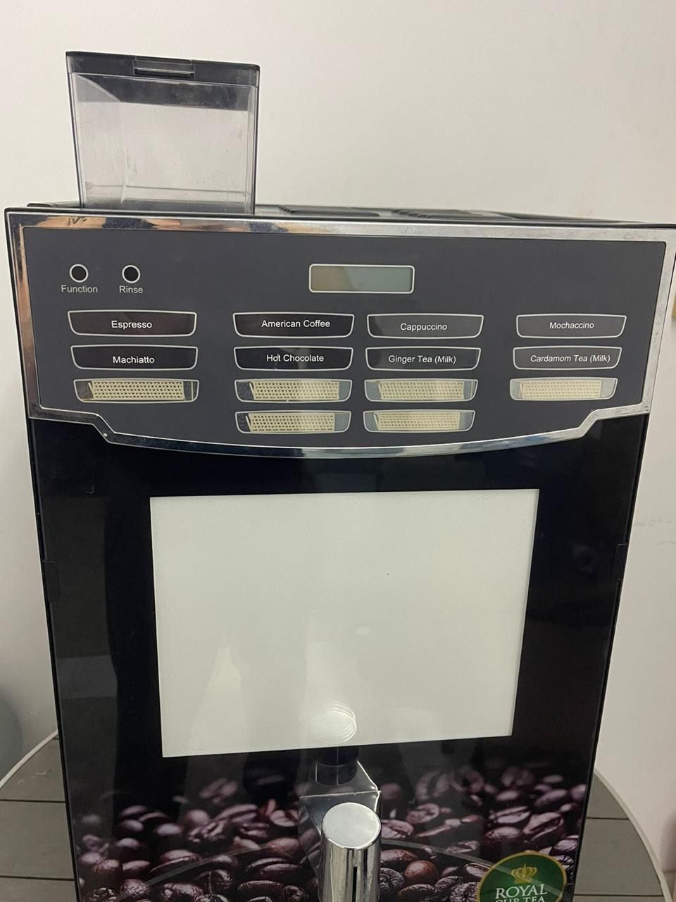 ماكينة قهوة إسبرسو ويوجد بها مطحنة داخلية ويوجد بها شاي كرك ومنتجات أخرى يوجد بها 4 علب داخلية لمنتجات التواصل