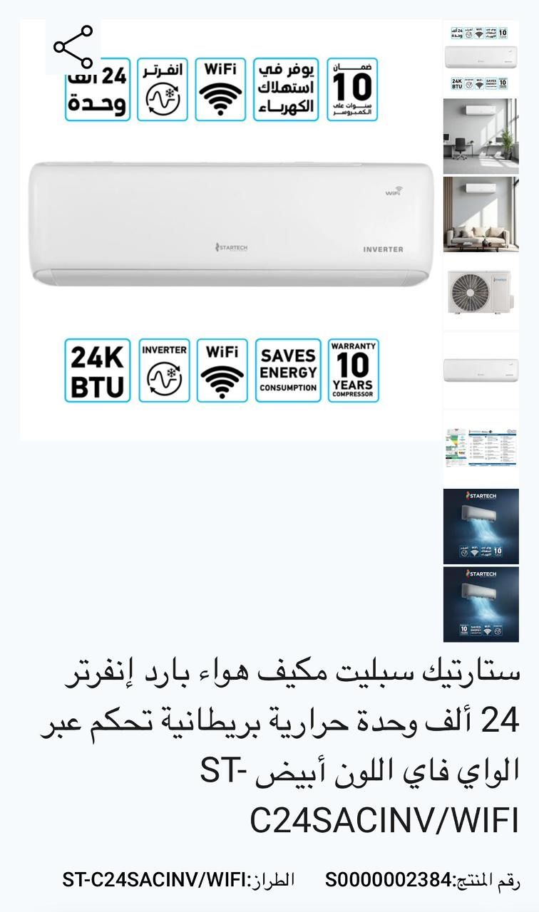 مكيفات سبليت جديدة ماركة ستار تيك هواء بارد إنفرتر 24 ألف وحدة حرارية تحكم عبر الواي فاي اللون أبيض السعر لا كميات فقط 1650 ريال