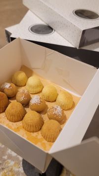 معمول بثلاث أنواع السادة والحليب المحموس العلبه بها 25 قطعة معموله بالزبدة الحيوانيه ومعمول الشرقية بالبيكان والشيره العلبه ب 45 ريال
