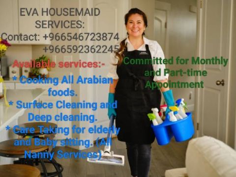 In Saudi Arabia if you need house maids with good experience like cooking, cleaning, caregiving this services available for days, weekly, monthly and years