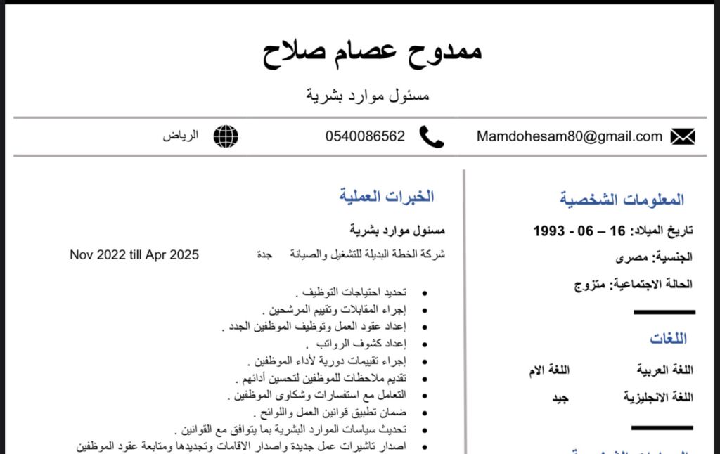 مسؤول موارد بشرية خبرة 3 سنوات في شركات التشغيل والصيانة ملم بجميع المواقع الحكومية والأنظمة السعودية موجود حاليا في جدة وجاهز للعمل فورا