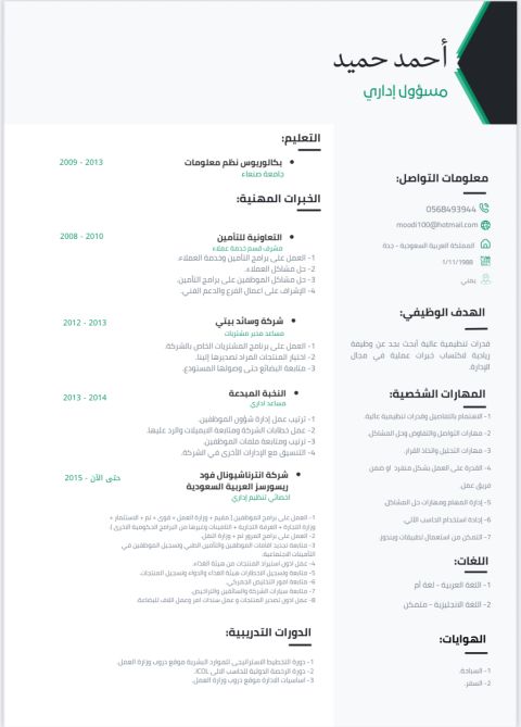 متخصص في الموارد البشرية وابحث عن فرصة عمل داخل بيئة احترافية تقدر الكفاءة والانجاز. خبرة قوية في إدارة جميع مهام الموارد البشرية - اتقان تام للتعامل مع المنصات الحكومية في السعودية ابشر، قوى، مدد، التأمينات الاجتماعية، بلدي، وزارة التجارة وغيرها - مهارات عالية في استخدام الحاسب الآلي والتعامل مع الأنظمة الالكترونية بكل احترافية - قدرة على التطوير وتحسين العمليات وتحقيق الامتثال الاداري