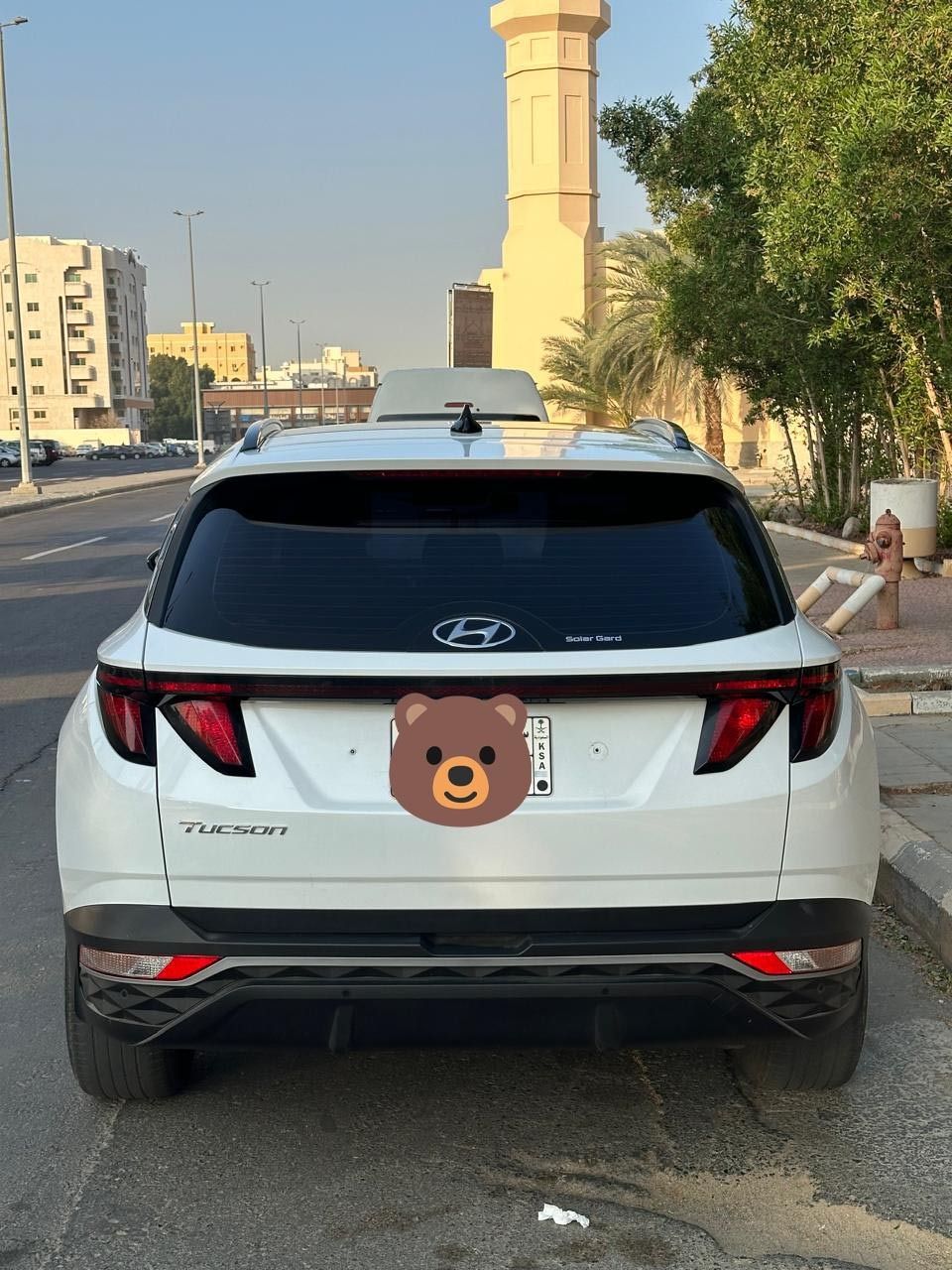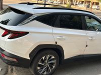 Hyundai Tucson 2021 (Gasoline) imported from Korea. Features include: panoramic sunroof, electric windows, 1600cc turbo engine, automatic transmission, gasoline fuel. First owner in Saudi Arabia, plates issued just one month ago. Mileage: 84,500 km. Smart entry with fingerprint start and remote start. White exterior, black interior. Steering wheel controls, cruise control, electric brakes, automatic hold, driving modes. Available for inspection, no issues.