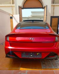 For sale: 2021 Hyundai Sonata, Korean import with customs card, first owner in Jeddah. Mileage: 96,000 km. Features: sunroof, keyless entry and start, navigation, electric trunk, push-button gear shift, rear camera and sensors, electronic handbrake, and rear AC. Condition: Engine and chassis are in excellent condition. Body is sound except for cosmetic paint on the right side. Price: 67,000 SAR. Contact for details.