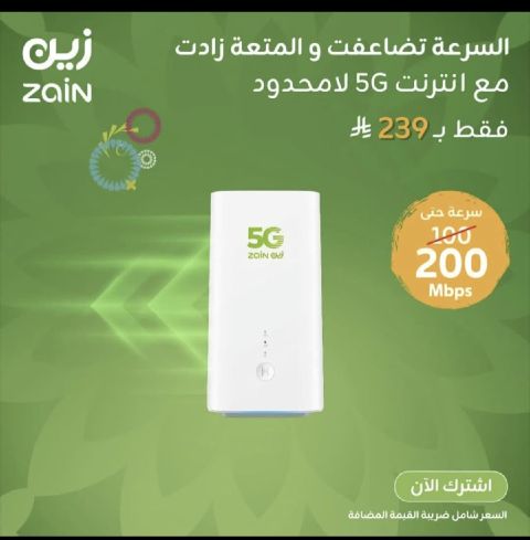 عروض الانترنت 5G - زين وSTC باقات انترنت 5G بسرعات عالية تناسب احتياجاتك أسعار منافسة - تفعيل فوري وتركيب مجاني. خصم 25% من الدفعة الأولى التوصيل داخل الرياض ومناطق أخرى للتواصل والاستفسار