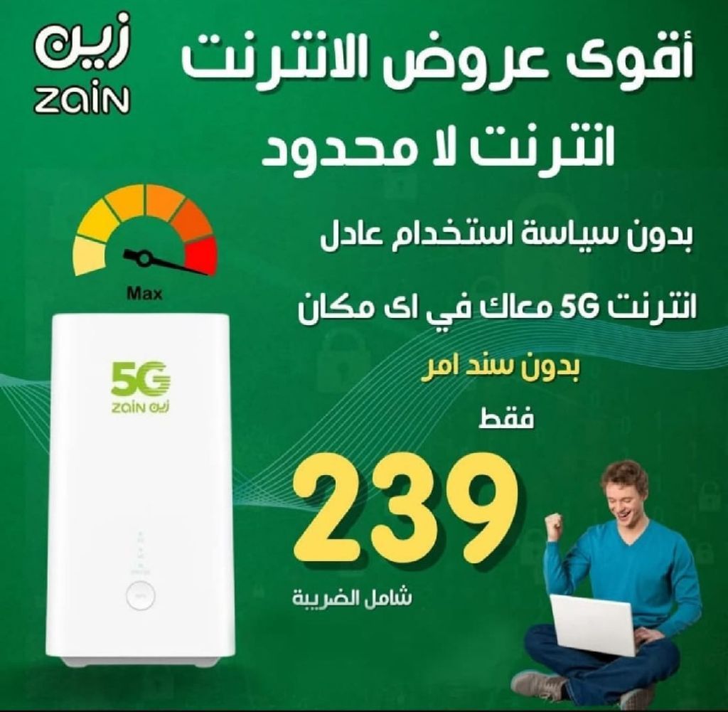 The best internet offers Unlimited internet (Zain) for 239 SAR monthly subscription including tax, no fair usage policy. Speed