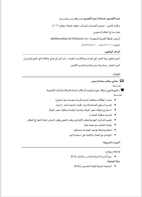 أنا سكرتير قانوني يسعدني الانضمام الى فريق عملكم في حال توفر وظيفة شاغره