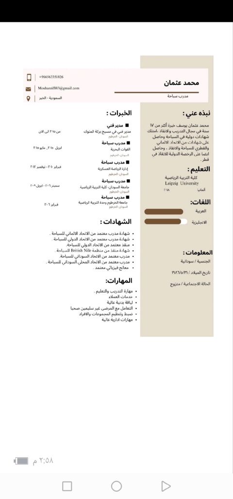 مدرب ومنقذ سباحة معتمد دوليا من الاتحاد الدولي للسباحة والاتحاد الألماني للسباحة (مقيم) تدريب كافة الاعمار