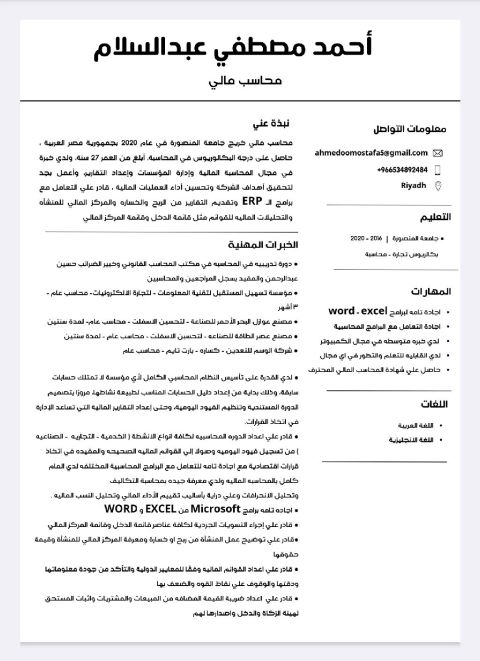 الاسم/ عمرو محمد كامل السن / 25 العنوان/ جدة الرياض مكة المدينة الوظيفة / سائق لموزين VIP سائق سياحة VIP ذو خبرة عالية في قيادة السيارات الفاخرة والتعامل مع كبار الشخصيات والسائحين باحترافية تامة. يتميز بالالتزام بالمواعيد، حسن المظهر، اللباقة في التعامل، والقدرة على توفير رحلة آمنة ومريحة بأعلى مستوى من الخصوصية سائق سياحة VIP - قيادة سيارات فاخرة (مرسيدس - BMW - تويوتا لاند كروزر - فان س