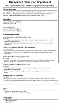 أنا شاب يمني ابحث عن عمل في جدة، أجيد العمل تحت الضغط كما أستطيع التحدث بلغتين العربية والانجليزية. وهذي سيرتي الذاتية