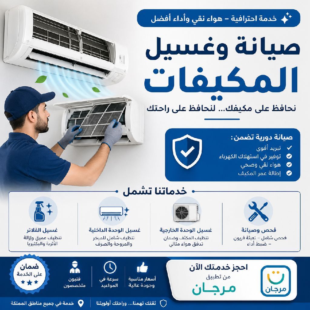 عرض خاص لفترة محدودة فني تكييف في جدة حي بريمان - خدمة سريعة بنفس اليوم تنظيف مكيف سبليت باحتراف ازالة الأوساخ والغبار تحسين التبريد فحص شامل للمكيف السعر 70 ريال فقط لأول عملاء الوصول خلال وقت قصير شغل نظيف ومضمون للحجز واتساب متاح اليوم - احجز الآن قبل اكتمال العدد