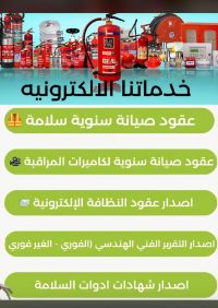 توريد وتركيب جميع اجهزة الانذار الاطفاء الرش الآلي عقود صيانة سلامة مخططات السلامة طفايات الحريق مضخات الحريق شهادة سلامة تقرير فني هندسي
