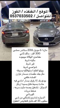 Mazda 6 for sale, model 2016, standard, mileage 300,000 km, second owner, urgent sale in Al Qunfudhah.