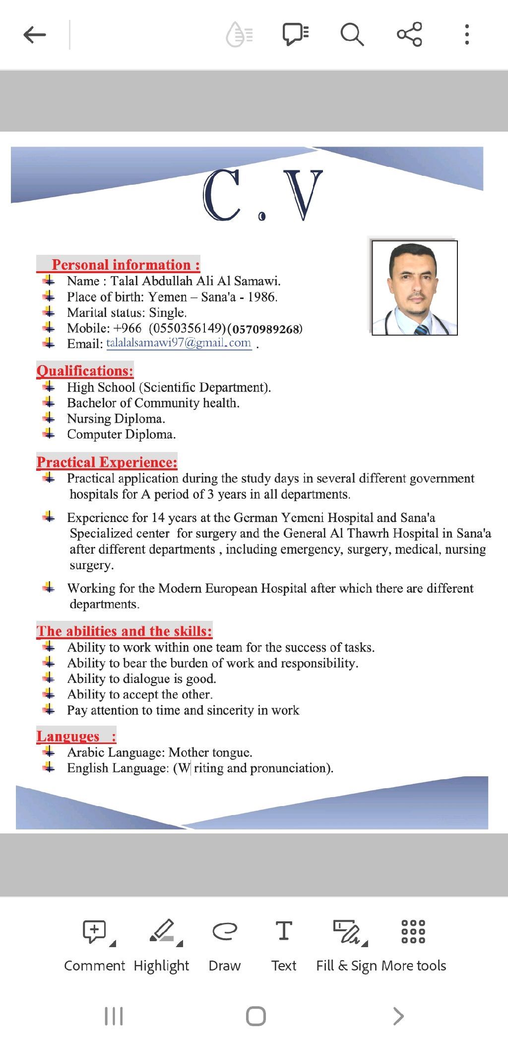 أنا حاصل على دبلوم عالي تمريض. ولدي خبرة طويله في المستشفيات والمراكز الطبية ولدي تصنيف الهيئة السعودية للتخصصات الصحية وأرغب في العمل لدى مستشفى أو مجمع طبي أو عيادة شركة. رقم