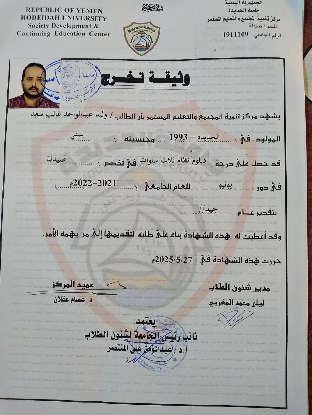 مساعد صيدلي دبلوم عالي 3 سنة يمني الجنسية لدي من الخبرة 13 سنة يمكنني التعامل مع الكمبيوتر وصرف الادوية ومراقبة تاريخ صلاحيتها وادارة مخزون الادوية لدي القدرة على تحمل ضغط العمل ويمكن العمل دوام كامل أو في فترة مسائيه أو في مستودع للادوية ومستعد في العمل في أي مكان في المملكة وإقامة سارية