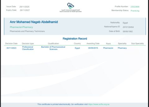 دكتور صيدلي في الرياض حاصل على التصنيف السعودي وإقامة سارية جاهز لنقل الكفالة خبرة سنتان في ادارة ومشتريات مركز طبي من أكبر المراكز في الرياض وخبرة 5 سنوات في شركات الادوية
