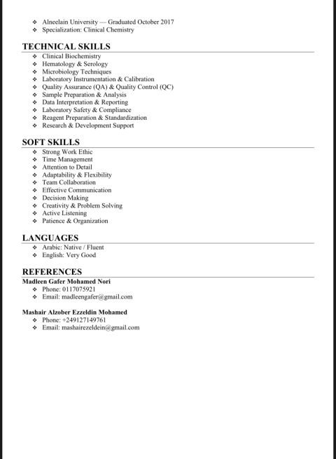 أود أن أتقدم لسيادتكم بطلب التوظيف على وظيفة أخصائي مختبر، والتي تتوافق مع مؤهلاتي العلمية وخبراتي العملية في مجال المختبرات الطبية. حيث امتلك خبرة في إجراء التحاليل المخبرية، وتشغيل وصيانة اجهزة المختبر، وضمان جودة النتائج وفق المعايير المخبرية المعتمدة