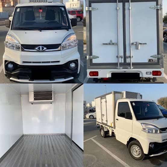 CMC pickup truck with refrigerator for monthly rental, cooling and freezing capability down to -18°C temperature.